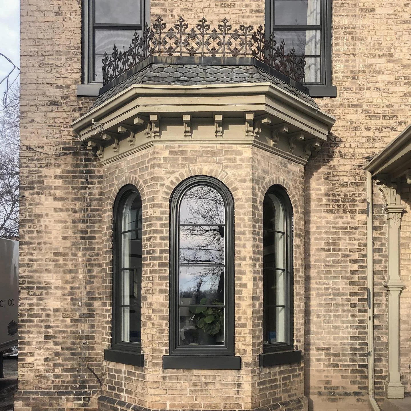 View fullsize After/Before - Custom shaped windows in black for this beautiful historic home 👌