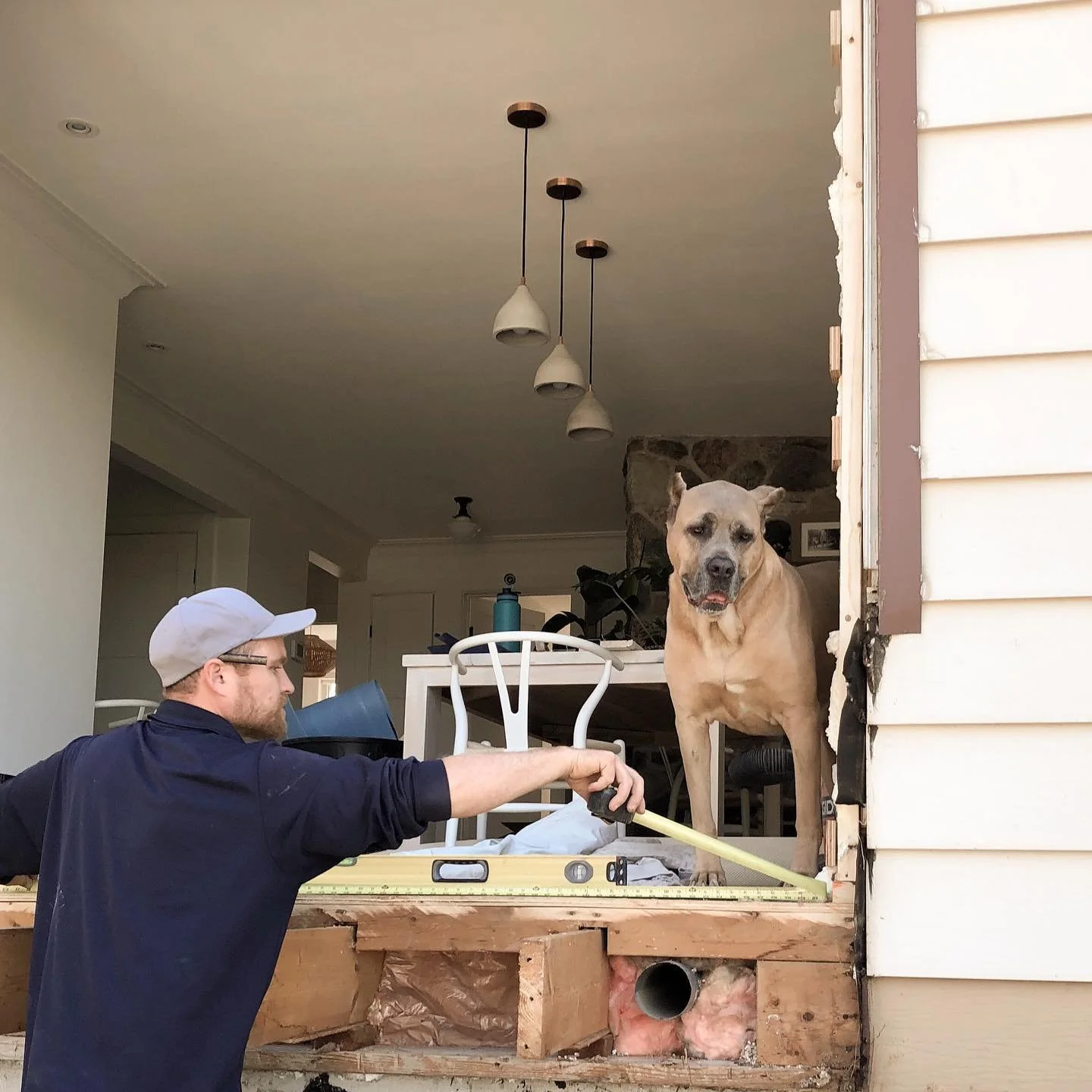 View fullsize We finished this custom window rebuild today. Swipe to see the progress, before pictures, and a cute visitor on the property.