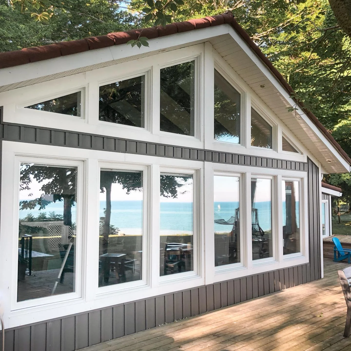 View fullsize All new windows for this unique property on Lake Erie in Port Dover. The reflection in the glass shows the stunning views.